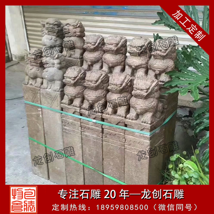 石雕拴馬樁樣式齊全、規(guī)格不一,常見的石雕拴馬樁都是方20cm的柱子,高度在1.5-2.0米之間,其最主要的不同便體現(xiàn)在它最上面的柱頭上。石雕拴馬樁的柱頭雕刻樣式很多,有雕刻獅子的、雕刻麒麟的還有雕刻