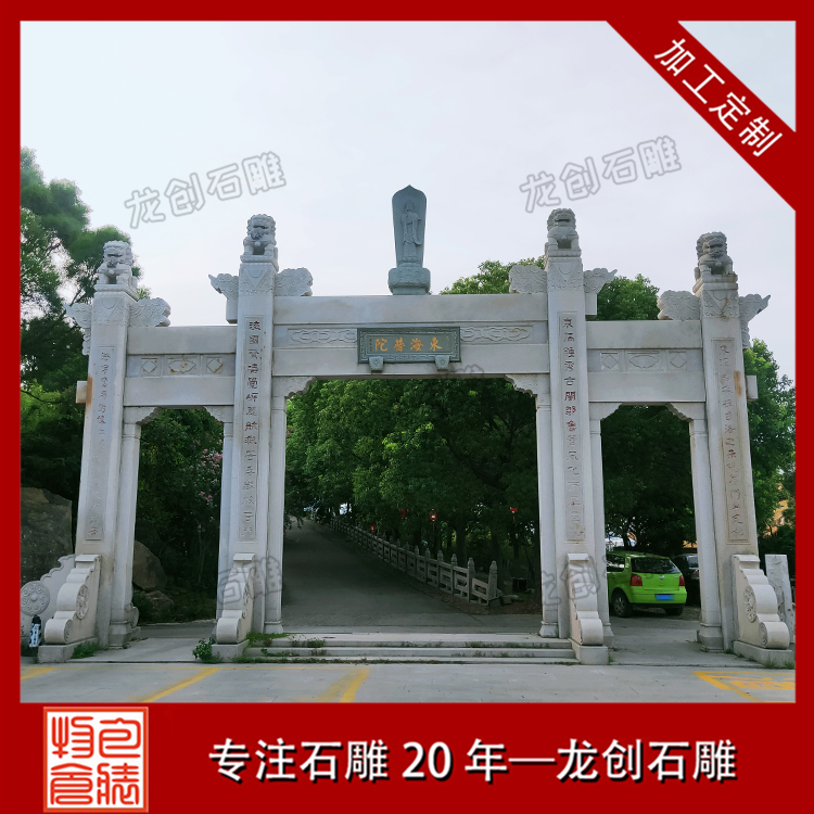花崗巖這種材質的優勢比較多,故而成為了比較受歡迎的雕刻之選,在國內各地都可以看到這樣的精美建筑。花崗巖石牌坊比花崗巖石牌樓的構造要簡單一些,受到當地的自然環境以及人文環境的影響,在雕刻的時候往往也會呈現出其自身的特色。牌樓自身的規格體制有明顯不同,比如常見的有單門牌樓,這是中國最早的牌樓形式,前身為周王朝時期祭祀所用的“欞星門”,也叫“單門牌樓”,其實只有門,并未有樓的構造,此外比較常見的應該是三門三樓、五門三樓以及三門七樓等等,這些不同體制的牌樓構造,正是展現了其自身不同的應用和寓意。