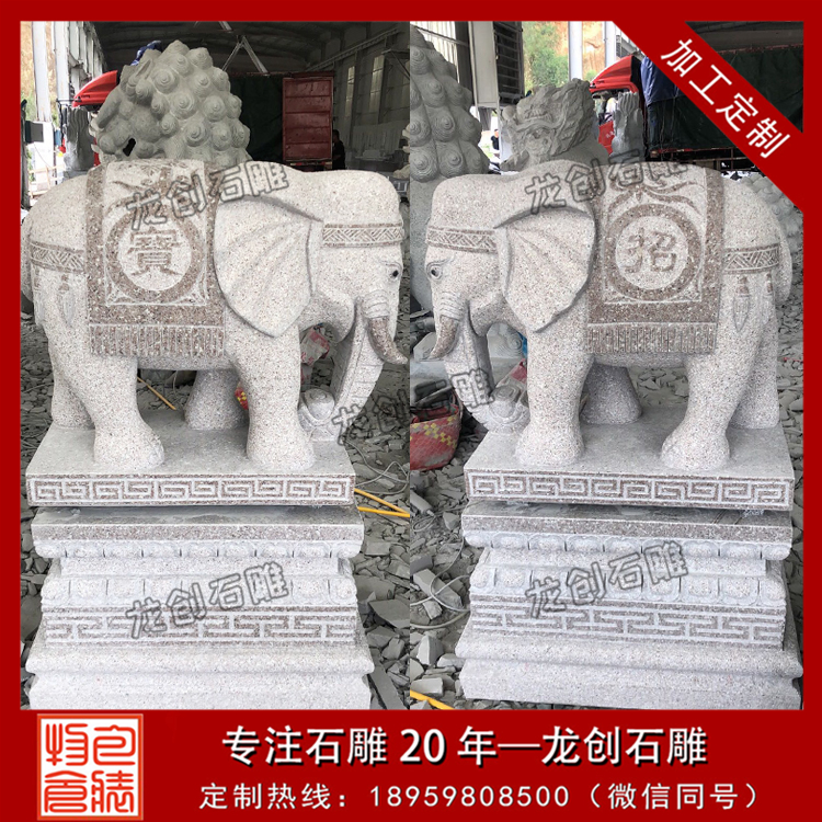 從圖片我們可以看出新邵縣陳家坊鎮加樂村定做的是一對招財進寶的石頭大象,現在大象已經雕刻完成及發貨,希望這對招財石雕大象能給加樂村帶去吉祥好運、招財聚財。