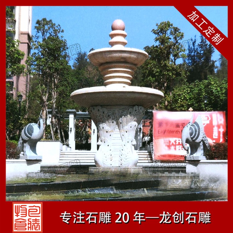 第3個方面,石雕噴泉的石材取材是比較廣泛的,市場上使用率比較高的幾款石雕噴泉有花崗巖噴泉、黃銹石噴泉;這些噴泉的石材價格不一,造型不同石材要求定做的噴泉價格也不同。其中,黃銹石噴泉和黃金麻噴泉不論從石材材質和色澤以及噴泉價格考慮都是近年來園林項目建設者使用比較多的石雕噴泉。