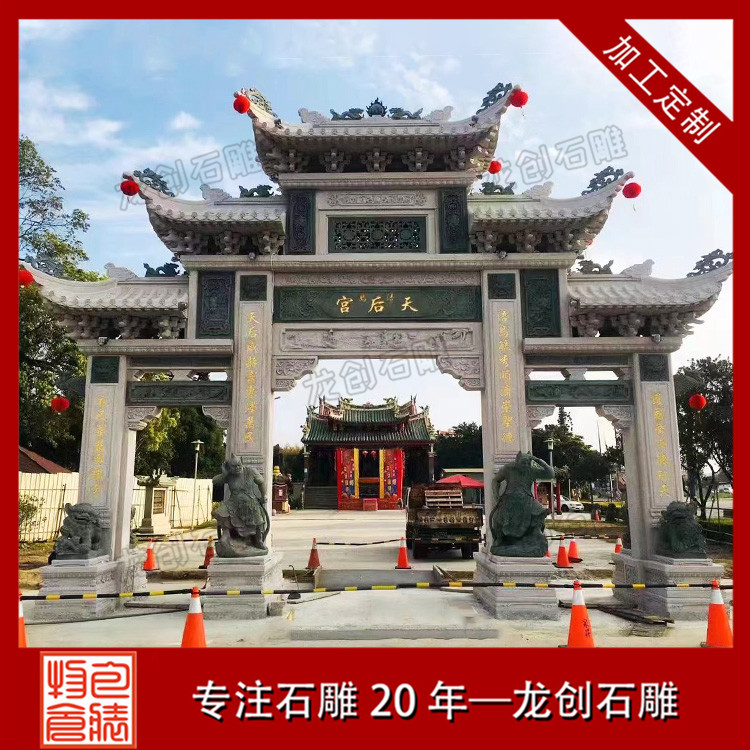 石雕山門作為寺廟的重要入口,其設(shè)計(jì)和制作都非常講究。首先,山門的造型要與寺廟的整體建筑風(fēng)格相協(xié)調(diào),既要體現(xiàn)出寺廟的莊嚴(yán)肅穆,又要彰顯出寺廟的獨(dú)特韻味。其次,石雕山門的雕刻工藝要求非常高,既要表現(xiàn)出線條的流暢美感,又要彰顯出雕刻技法的高超。最后,石雕山門的顏色也是非常重要的,通常選用深色系的石材,以突顯出寺廟的神秘色彩。