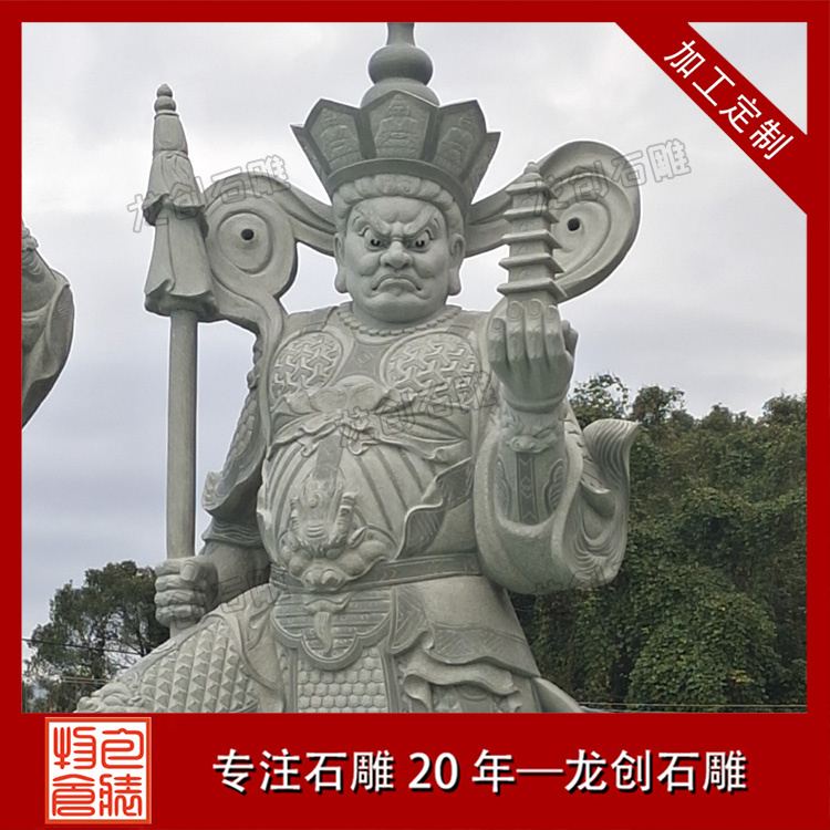 石雕四大天王是佛教中的護法神,常被雕刻成石像用于寺廟、道觀等宗教場所的裝飾和守護。這四位天王分別是: