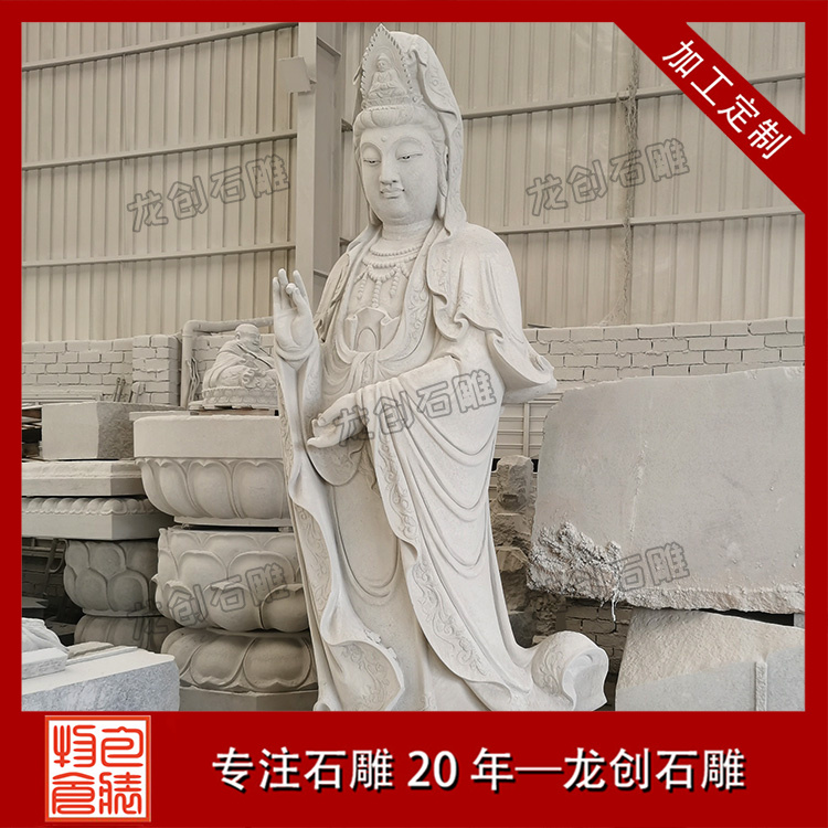 石雕觀音雕刻,是匠人之心與佛教慈悲的融合。每一刀一鑿,皆蘊(yùn)含著匠人對(duì)美的追求與對(duì)信仰的敬畏。在堅(jiān)硬的石材上,藝術(shù)家們以超凡的技藝,勾勒出觀音菩薩那慈祥的面容、優(yōu)雅的姿態(tài),以及那份超脫世俗的寧?kù)o與莊嚴(yán)。