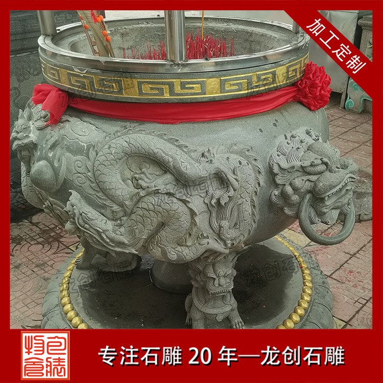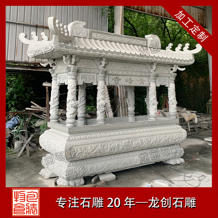 雕刻過程中,匠人會運用各種石雕工具,如錘子、鑿子、刻刀等,通過鑿、刻、磨等手法,將石材逐漸塑造成香爐的形狀。每一刀一鑿都需精準有力,既要展現(xiàn)出香爐的莊重與威嚴,又要體現(xiàn)出石雕藝術(shù)的細膩與柔美。在雕刻香爐的紋飾時,匠人會格外用心,將龍鳳呈祥、蓮花盛開、祥云繚繞等吉祥圖案生動地呈現(xiàn)在香爐之上,寓意著吉祥如意、福壽安康。