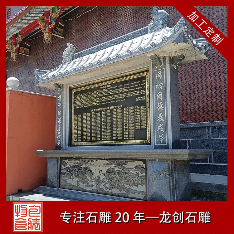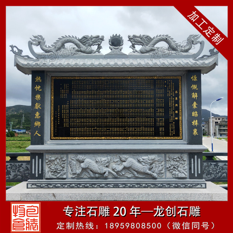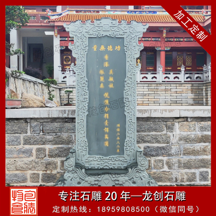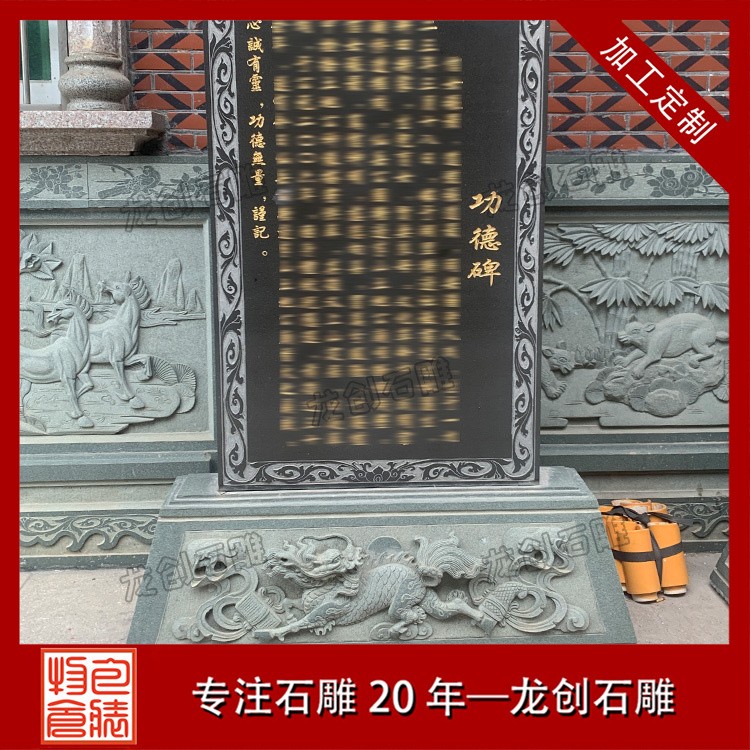 設(shè)計特點(diǎn):通常由一塊長方形的石頭精心雕刻而成,上面刻有詳盡的文字內(nèi)容,如表彰對象的姓名、事跡、貢獻(xiàn)等,以及相關(guān)的圖案或浮雕,以生動形象地展現(xiàn)功德事跡的輝煌與偉大。