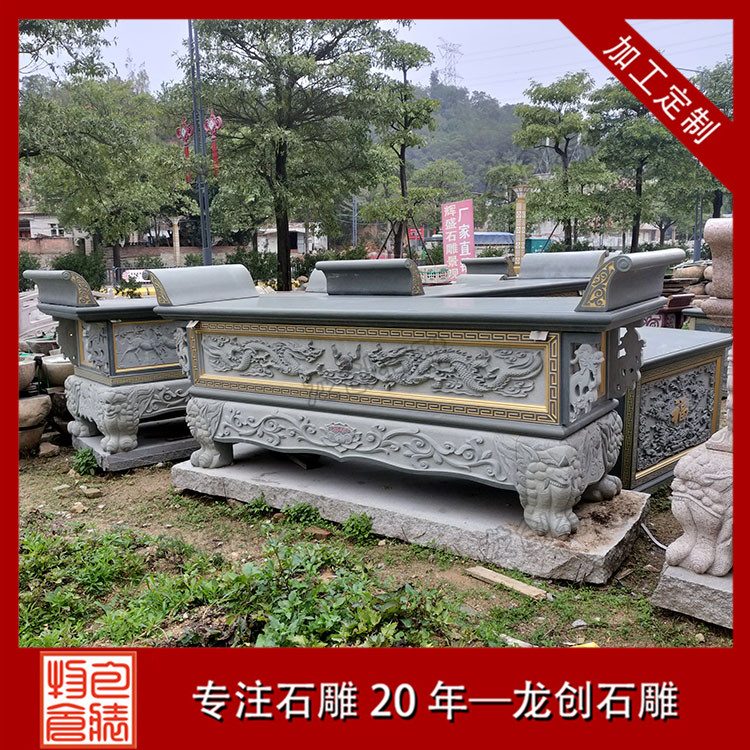 青石:青石以其古樸典雅的青灰色調(diào)深受喜愛。它的質(zhì)地相對細(xì)膩,易于雕刻,能展現(xiàn)出精致的圖案和紋理。在雕刻傳統(tǒng)中式風(fēng)格的石雕供桌時,青石是一種理想的材料,能很好地體現(xiàn)出中國傳統(tǒng)文化的韻味。