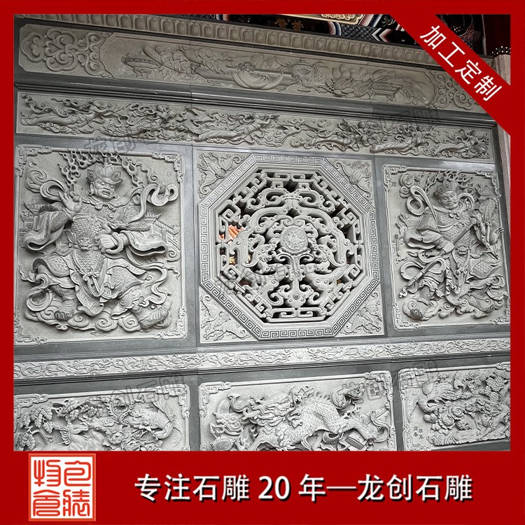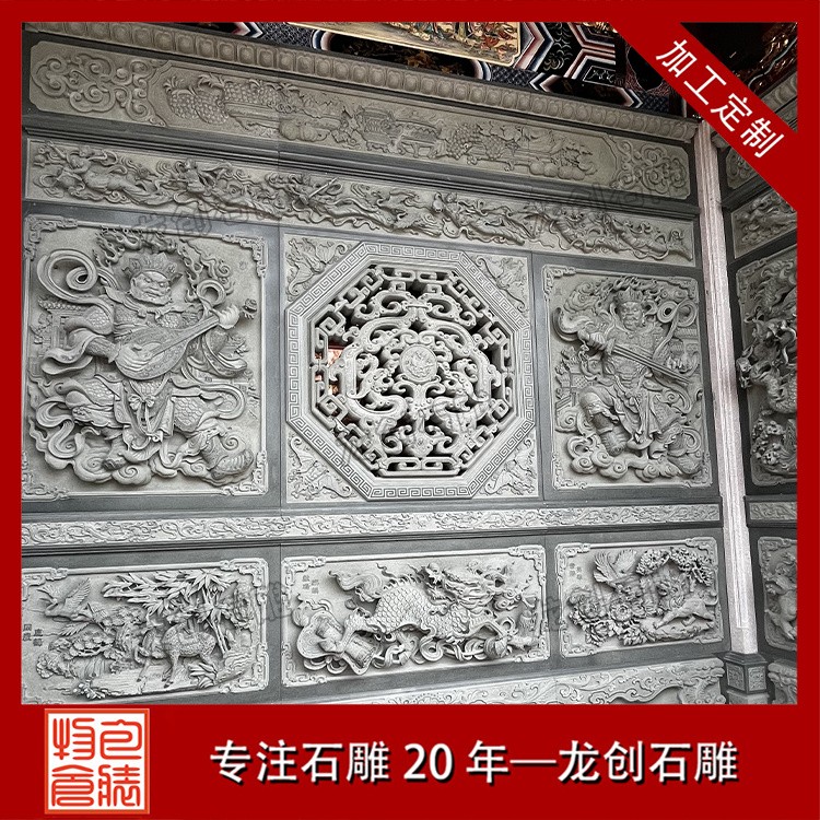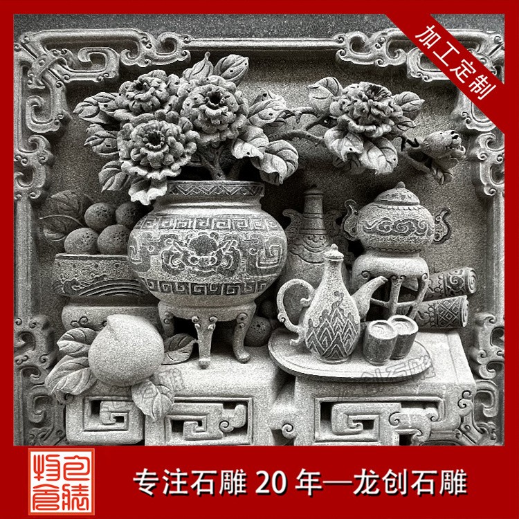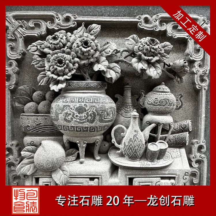 在工藝技法上,這類浮雕注重平面構圖向立體空間的轉換。采用寫實與寫意相結合的表現手法,花朵枝葉的形態力求準確,而整體布局則講究虛實相生。雕刻時通常分三個層次處理:遠景層淺刻勾勒,中景層適度凸起,近景層重點刻畫。特別是禽鳥的喙眼、花瓣的翻卷、葉片的脈絡等關鍵部位,通過精細的刀工呈現出生動的細節質感,使堅硬的青石呈現出柔美的自然氣息。