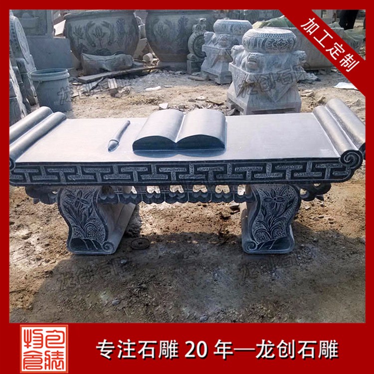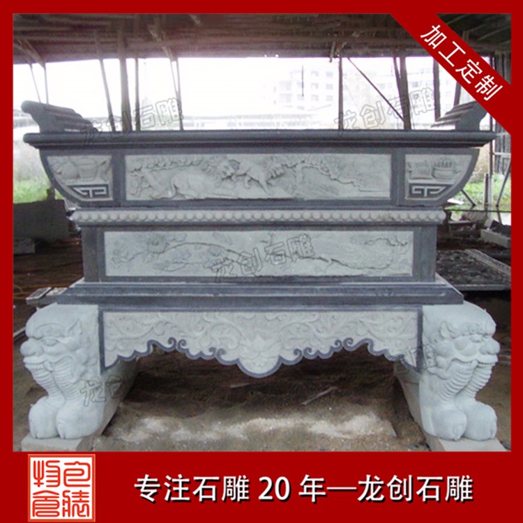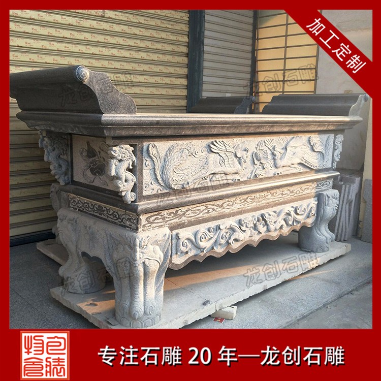石雕供桌常見款式為長方形,石頭材質(zhì)屬于青石,面中間是一精致的神臺供桌,雕刻一龍王看廟,高度約與方桌相等。祭祀時(shí)常供設(shè)香爐、蠟竿和擺放供品,此為石頭所制,故名石供桌(神臺)。供桌常見幾種地方擺放,廳堂供桌、佛堂供桌、寺廟供桌、神臺供桌等,與其配套的有香爐、石鼎。龍創(chuàng)石雕有限公司為石雕供桌定做廠家、青石供桌生產(chǎn)加工廠家、漢白玉供桌生產(chǎn)加工廠家,提供各式石材供桌加工,青石九龍供桌、專業(yè)生產(chǎn)青石供桌、花崗巖供桌、大理石供桌、青石供桌批發(fā)、供桌生產(chǎn)加工等等。