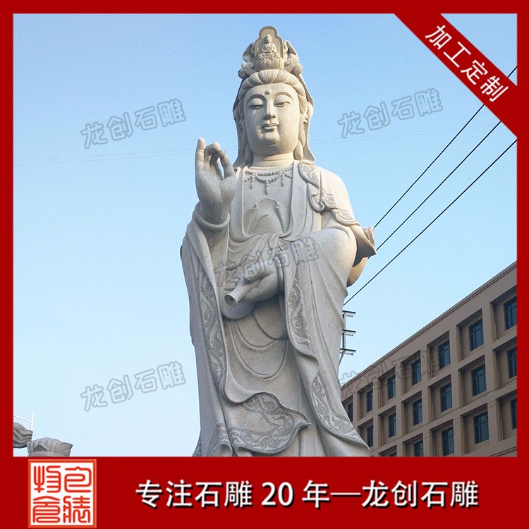 石雕刻觀音菩薩價格要看石材。石雕觀音像的建造材料有青石、花崗石、大理石、燕子石、漢白玉等石材。漢白玉石材建造觀世音富有光澤感和通透感,建造成本稍高;而花崗石和青石建造的觀世音也是較為常見的,表面有磨砂的質(zhì)感,為青白色的居多。對于建造規(guī)模大的石雕觀音像的雕刻來說,選擇花崗石材在價格上較為優(yōu)惠。大理石石材建造的觀世音像,表面看上去平滑,紋理也非常的柔和,且大理石的名品種類高達三十余種,可建造出不同造型以及樣式的觀世音像。