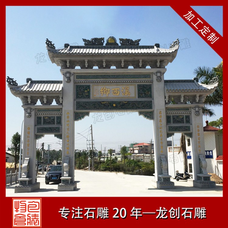 從石牌坊廠家出示的村頭石牌樓款式大全集中能夠看得出,村頭石牌樓款式有單門和三門二種款式,在其中這門石牌坊又分成單門一樓、單門三樓、單門五樓等,而三門石牌坊分成三門三樓、三門五樓、三門七樓、三門九樓等,根據(jù)這種詳細(xì)介紹堅(jiān)信大伙兒對村頭石牌樓款式擁有全新升級的掌握。村頭石牌樓價(jià)格的價(jià)格就要根據(jù)這些款式來預(yù)算。