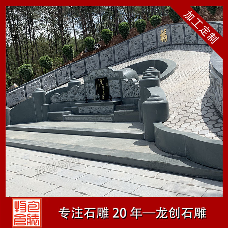 公墓墓園石雕墓套墓圍設(shè)計需要考察當(dāng)?shù)氐膶嶋H情況,再設(shè)計出合適的樣式和尺寸,結(jié)合實際需求再設(shè)計浮雕圖案,像松鶴、鹿竹、蓮花、二十四孝等等吉祥如意的圖案。