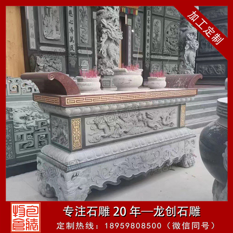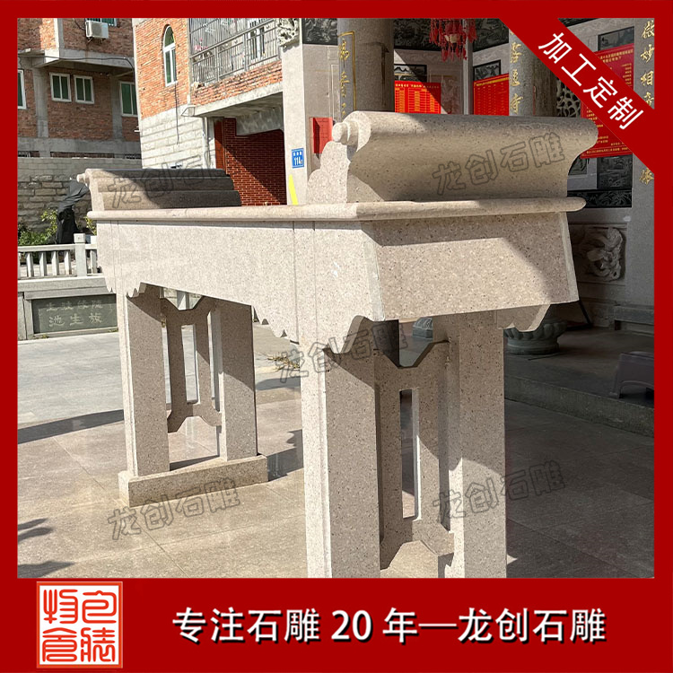 我廠專注石雕工藝多年,提供各類定制化供桌產(chǎn)品,選用優(yōu)質(zhì)花崗巖、青石等天然石材,結(jié)合傳統(tǒng)工藝與現(xiàn)代雕刻技術(shù),確保每一件作品既莊重大氣,又富文化底蘊(yùn)。