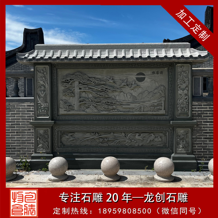照壁雛形可追溯至漢代,早期為宮苑貴族專用;唐宋漸入寺院、官邸;明清普及至民間宗祠、大院與園林,成為身份與家風的載體。由壁座(須彌座 / 素座,承重)、壁身(主體,雕刻核心區)、壁頂(仿傳統屋頂,歇山 / 硬山 / 懸山,防雨水侵蝕)三部分組成。