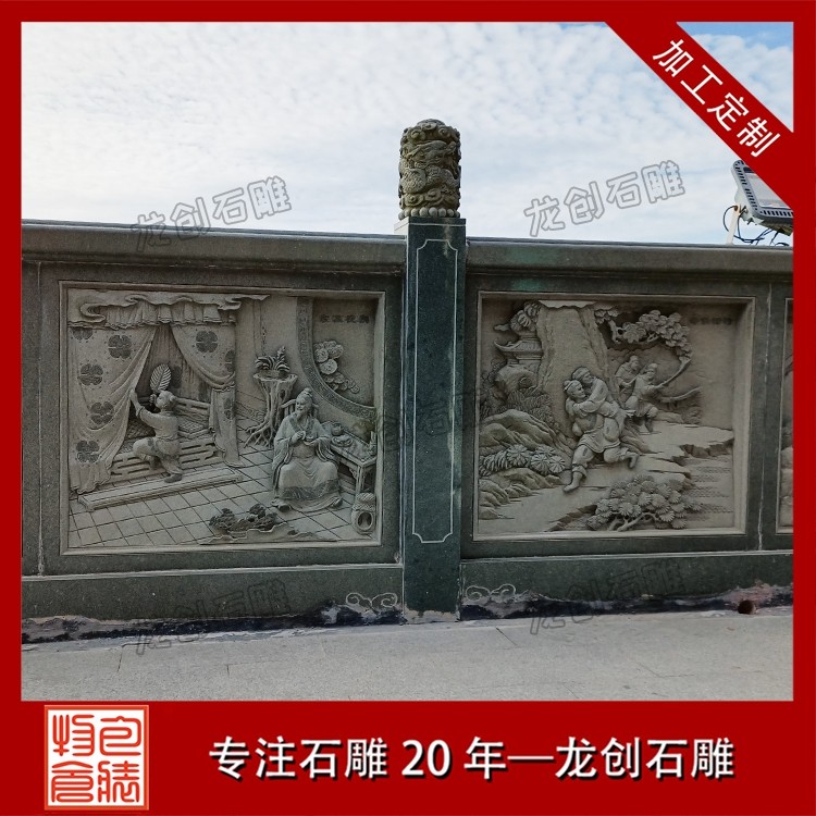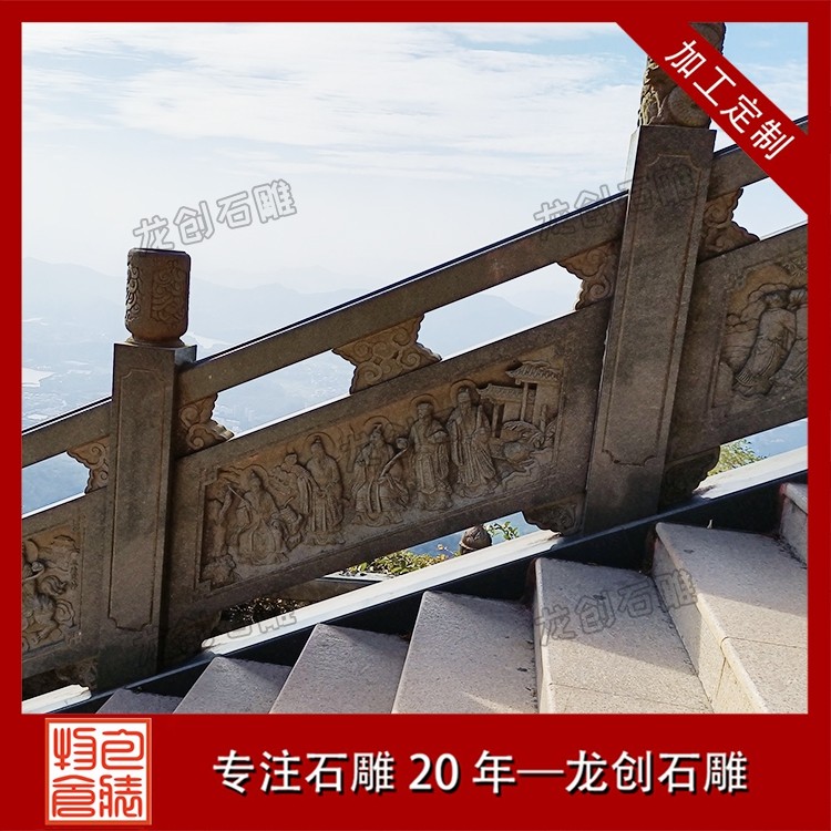 打磨與雕刻,是賦予石雕欄桿靈魂的關鍵環節。匠人先用粗磨工具去除石材表面的粗糙痕跡,再用細磨工具反復打磨,讓欄桿表面平滑細膩,觸感溫潤。雕刻環節更是考驗匠人的功力,手工雕刻與數控雕刻相輔相成,淺雕、深雕、鏤空雕等多種技法靈活運用,祥云的飄逸、花鳥的靈動、人物的神態,都在匠人的刀下被展現得淋漓盡致。每一刀都精準有力,每一處細節都精益求精,既保留了石材的天然質感,又賦予了其人文溫度。最后,通過專業的拋光與防護處理,讓石雕欄桿的光澤更持久,防水防污、抗腐蝕能力更強,得以歷經歲月打磨而依舊熠熠生輝。