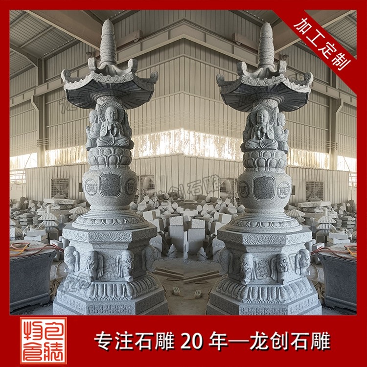 專為寺廟場景打造的雕刻石塔,更注重宗教內涵與藝術表現:經幢塔:刻有經文咒語,供信眾繞行祈福;舍利塔:供奉高僧舍利,造型精致莊重;鎮寺塔:立于寺院中軸線,成為視覺與精神的中心。