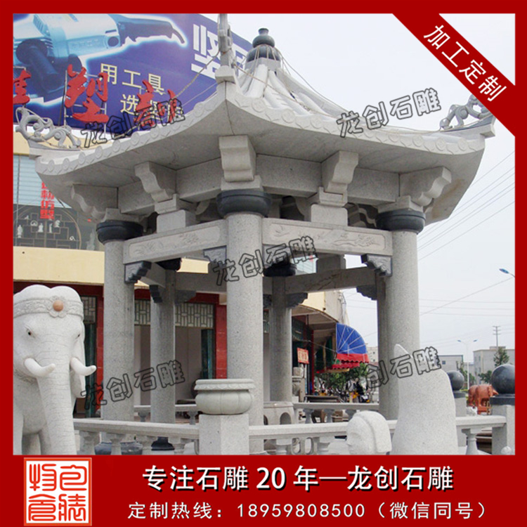 石雕涼亭走廊是供人休息的場所,可利用的石材有大理石、花崗巖、青石等等,不同材質造價不一樣,尺寸也是影響涼亭石雕價格的因素,具體報價歡迎咨詢——石雕涼亭走廊廠家龍創石雕
