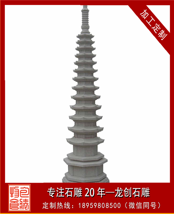石塔是各種石料雕刻而成,是一種在亞洲常見的,有著特定的形式和風格的中國傳統建筑。石塔是供奉或收藏佛骨、佛像、佛經、僧人遺體等的高聳型點式建筑,稱“佛塔”。14世紀以后,石塔逐漸世俗化。石塔前身為古印度埋葬佛祖釋迦牟尼火化后留下的舍利的一種佛教建筑窣堵波。在漢代時傳入中國與中國本土建筑相結合形成了中國的石塔這種建筑形式。