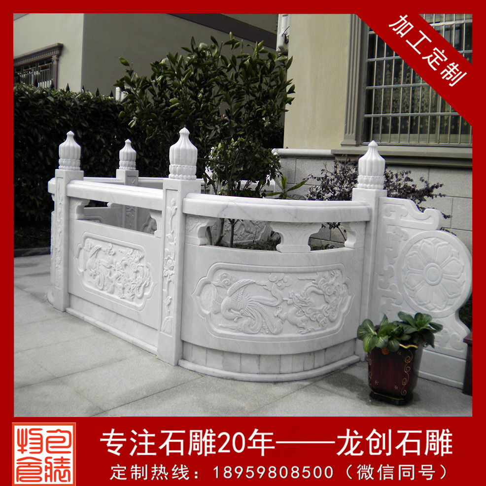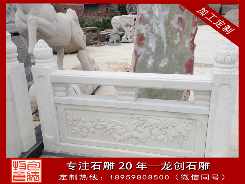 大理石欄桿是我國傳統(tǒng)建筑最常見的組成部分,無論是在走廊、橋邊、花池、園囿、樓閣、臺榭等,都要用欄桿圍護(hù)避免發(fā)作危險。特別是在園林建筑傍邊,石雕欄桿是不可或缺的,既能夠攔隔圍護(hù),將不同的區(qū)域區(qū)分開來,又不會將各個區(qū)域之間的聯(lián)系阻斷,特別是欄桿上的圖畫還能夠點綴環(huán)境。