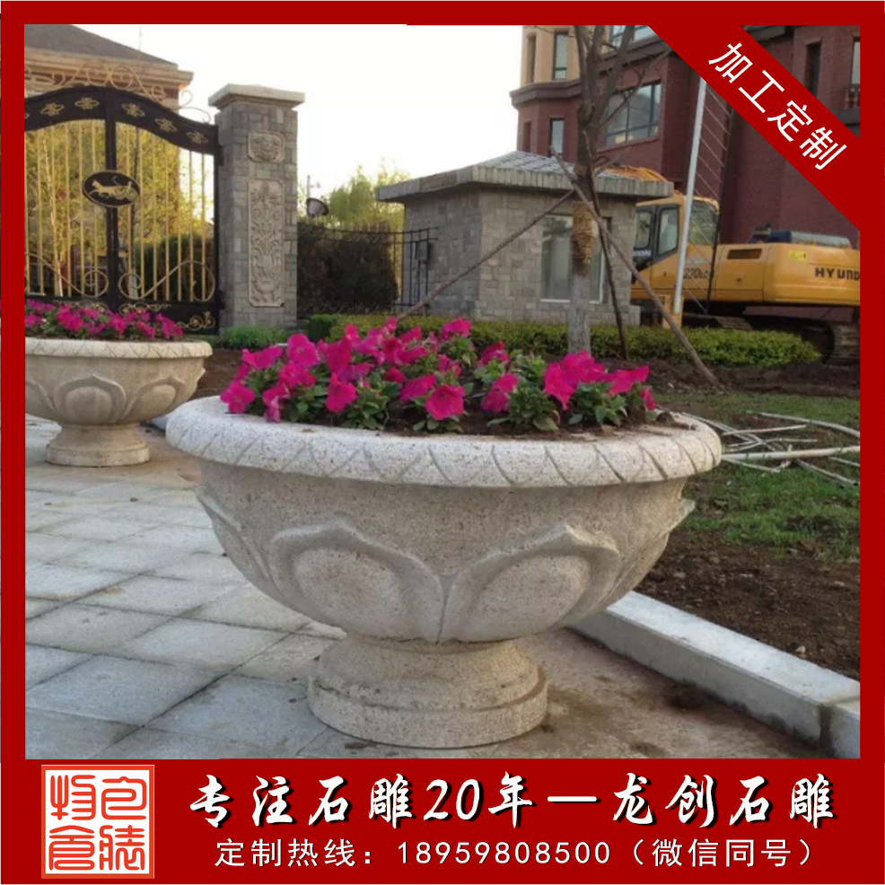 石雕花缽、石材花缽是通過石材雕刻制作而成的花盆雕塑作品,一般以砂巖、青石、花崗巖、大理石為材質,造型上大都以浮雕畫進行盆壁的裝飾修飾。石材花缽既有花盆的實用性,又有很好的裝飾性,且質地堅硬致密、強度高、抗風化、耐腐蝕、耐磨損、吸水性低,顏色美觀,格調高雅,保養方便簡單,使用壽命長。以下介紹幾款常見石材花缽種類