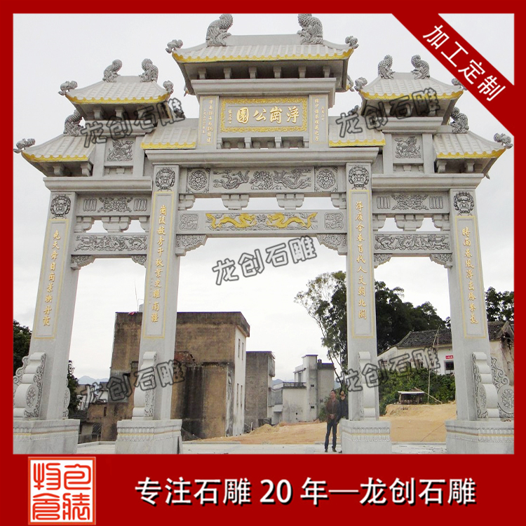 石雕牌樓的材質有很多,青石、花崗巖、漢白玉都可以制作石牌樓,材質不一樣,石牌樓價格也不一樣,其中價格最貴的是漢白玉石雕牌樓,由于漢白玉石材資源稀缺,開采量少,因此價格高,漢白玉石牌樓定制選惠安龍創(chuàng)石雕,雕刻工藝精湛,產(chǎn)品質量上乘,源頭廠家,價位合理。支持來圖來樣定制,龍創(chuàng)石雕專業(yè)為您服務,歡迎咨詢考察。