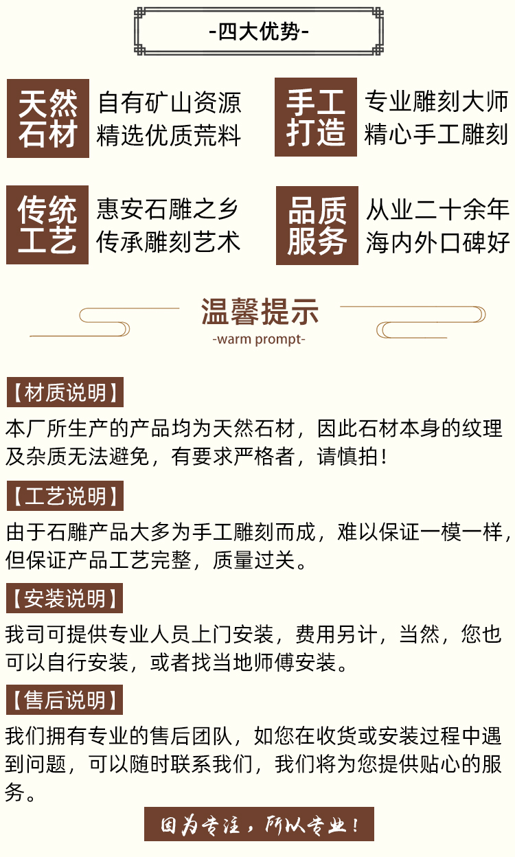 其實現在的石欄桿價格主要是看石材和客戶雕刻要求來定價了,而利用石材做的公園欄桿、河道欄桿等樣式很多也很普遍。有分體的欄桿,整體的欄桿,帶地鋪石的不帶地鋪石的,還有一種就是整體的花瓶欄桿,這種通常適用于別墅陽臺的欄桿。像一些雕刻的欄桿常用于河道工程,公園建筑,旅游景區等等。