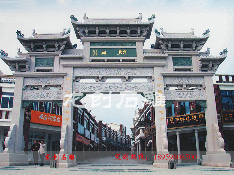 石雕石牌坊,在我國有著長久的歷史文化,其不只在歷史中占有共同的位置,就在當代依然具有強大的生命力。中國石牌坊延綿千載,數以萬計,遍及在全國各地的鄉村、祠堂、寺院、道觀、景區、園林、陵園、墓地、街巷、路橋等處,真是品種繁多、蔚為壯觀,展示了博大精深的華夏文化。石雕牌坊構造緊湊勻稱,形貌生動,手法細膩,文化內涵深沉,雕琢精麗工巧,一派渾實勁健的藝術特征,流顯露與時期不太相符的藝術光榮,是我們龍創石雕雕琢工匠制造。